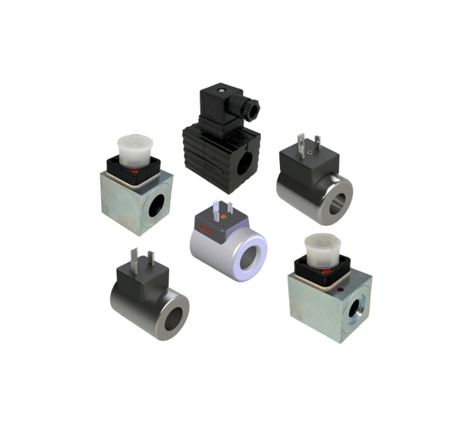 Eine große Vielfalt verschiedenartiger Magnetspulen kommen in der Hydraulik zum Einsatz. Jeder Hersteller hat seine „eigenen“ Spulen, die auf seine Ventile passen. Die Kombinationen und Varianten sind umfangreich.